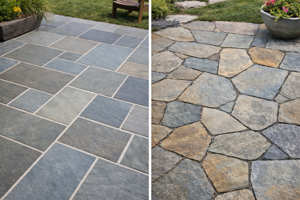 There’s a significant difference between genuine crazy paving and the tile-based imitations common on the market. Real crazy paving uses irregular natural stone pieces shaped and fitted by hand on site. The result has visual rhythm, texture, and depth that manufactured alternatives can’t replicate.